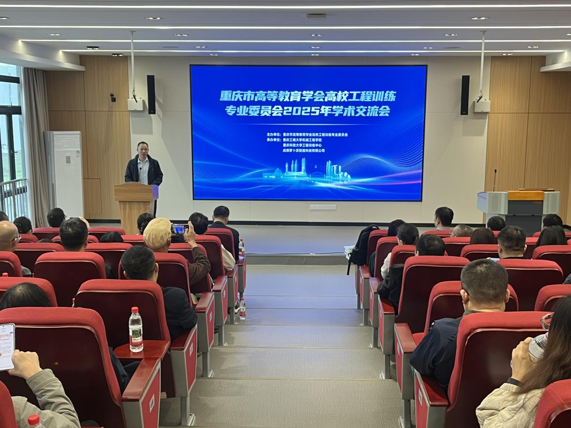 11月2日上午,由重庆市高等教育学会高校工程训练专业委员会主办,重庆科技大学工程训练中心、重庆工商大学机械工程学院承办的“重庆市高教学会工训专委会2025年学术交流会”在重庆工商大学茶园校区举行。来自全市17所高校、12家企业的70余名代表及西安交通大学、华中科技大学特邀专家齐聚一堂,以“智能制造赋能工程训练,产教协同培育创新人才”为主题,紧扣党的二十届四中全会精神及2025年全国教育工作会议要求,聚焦智能制造、数字孪生、绿色制造等前沿领域,为推进人工智能技术与高等教育、工程训练与产业需求深度融合搭建交流平台。