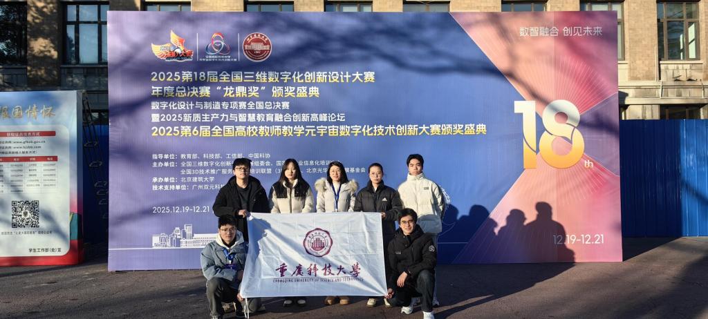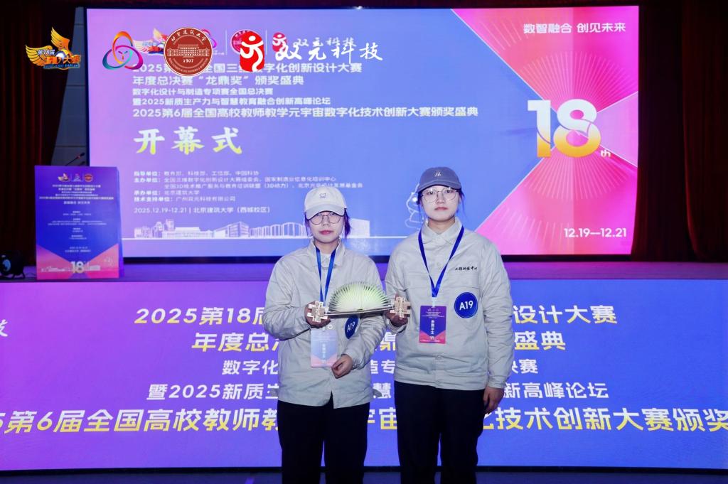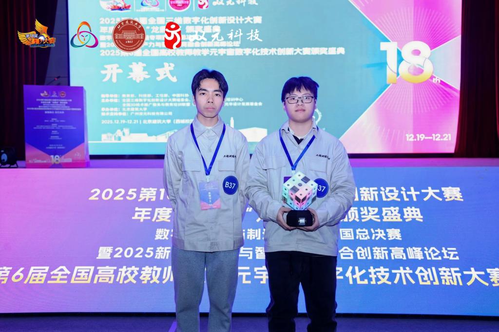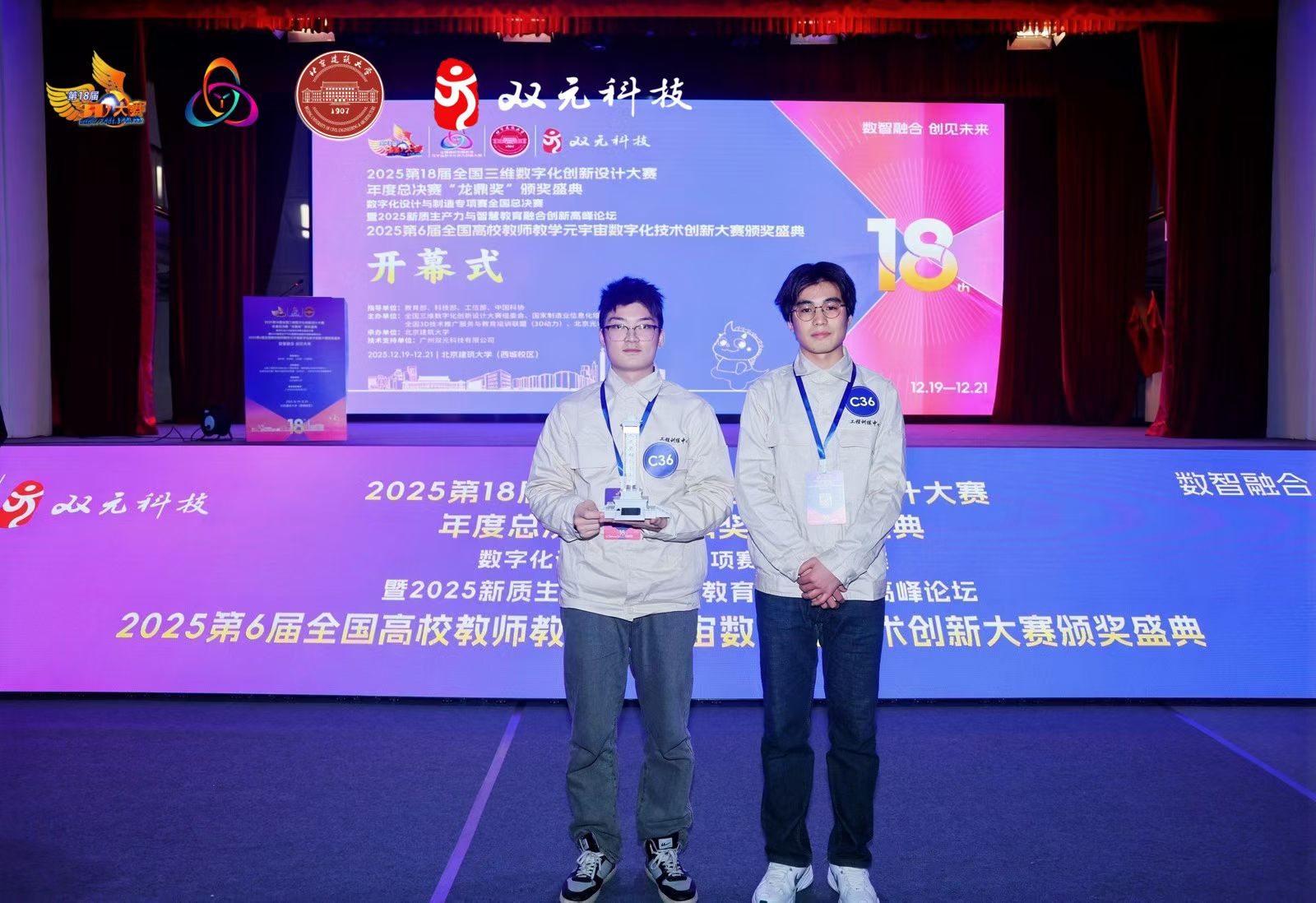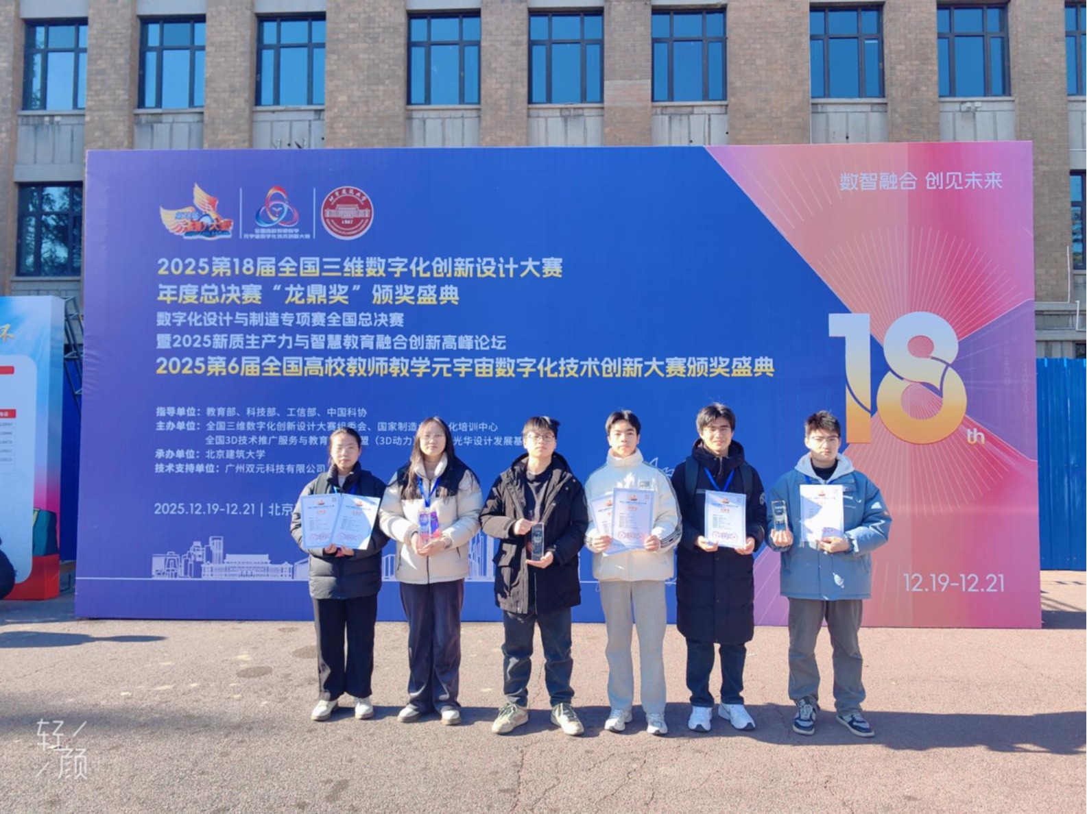 2025年12月19至21日,由科技部、教育部等单位指导、北京建筑大学承办的第18届全国三维数字化创新设计大赛“数字化设计与制造”赛项全国总决赛落下帷幕。我校机械与智能制造学院学生在工程训练中心教师的全程指导下,取得突破性成绩,荣获全国一等奖1项、二等奖1项、三等奖1项,展现了我校在数字化设计与制造领域的育人成效。
